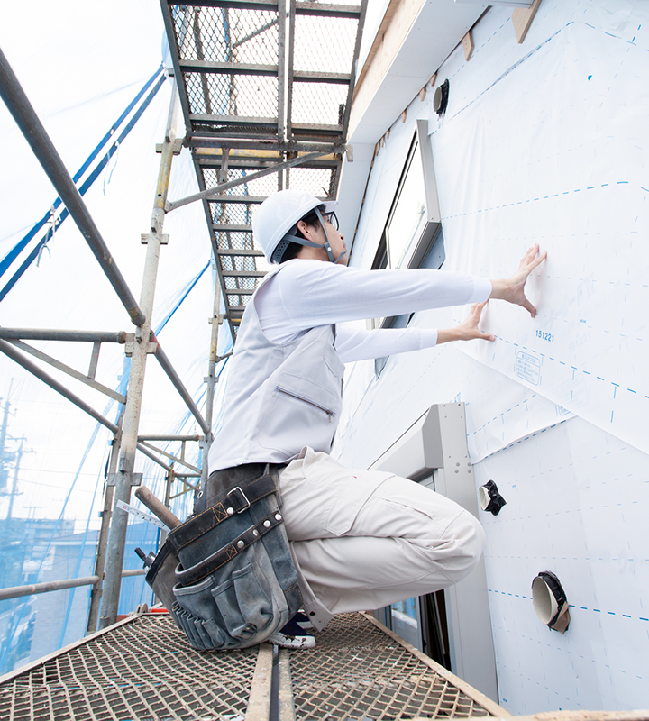 外壁にはコケ・ホコリ等、そしてクラック(ひび割れ)サイディングの目地の劣化等、長年の経過と共に様々な症状が現れてきます。先ず最初に外壁の状態を分析し、ご報告をする診断書を作成致します。お客様に理解して戴いてから材料を選び、丁寧に洗浄をし汚れを取り適切な下地処理をしてから下塗り→中塗り→上塗りの順番で施工しています。外壁の機能性を高めながら、美しい外観を保持することに努めています。